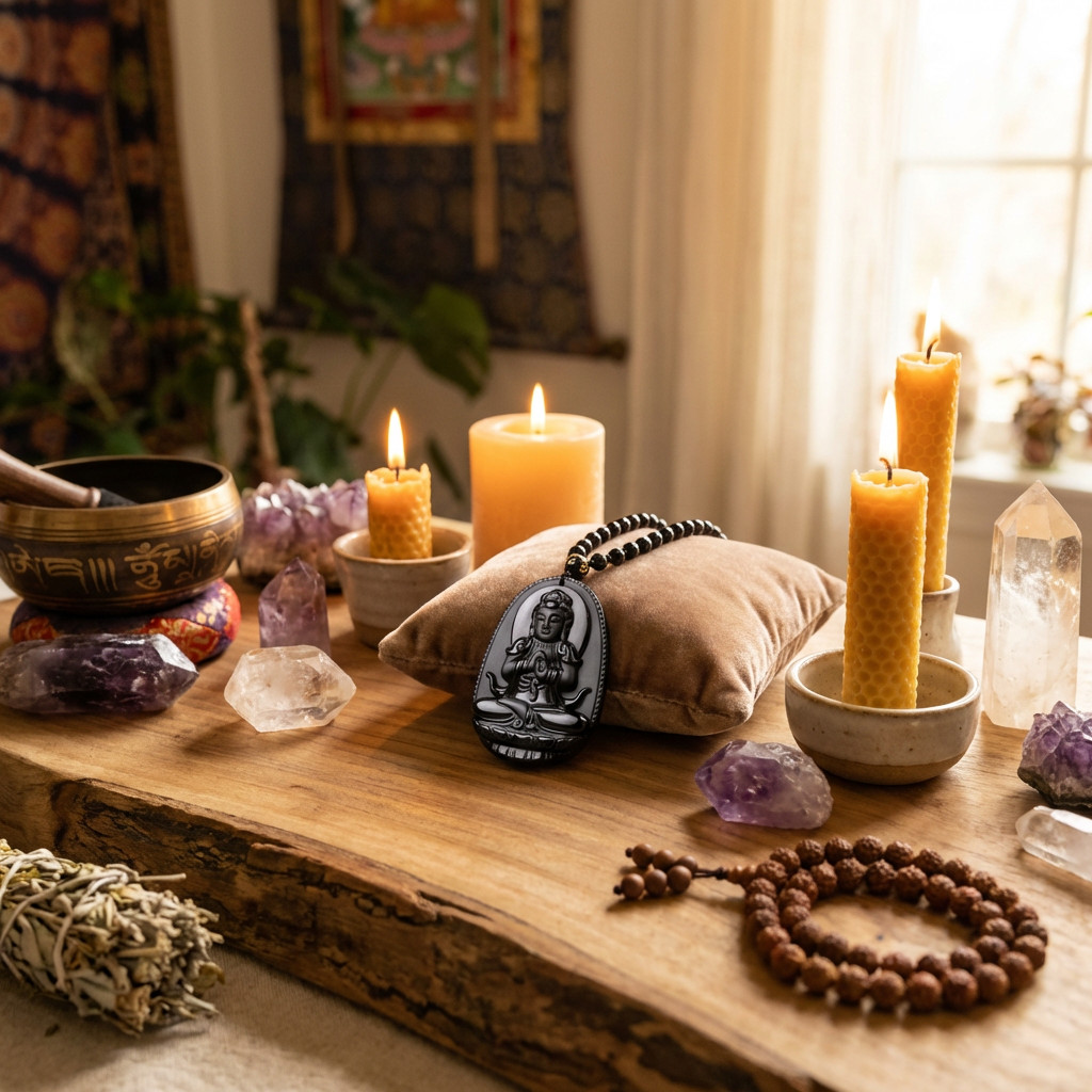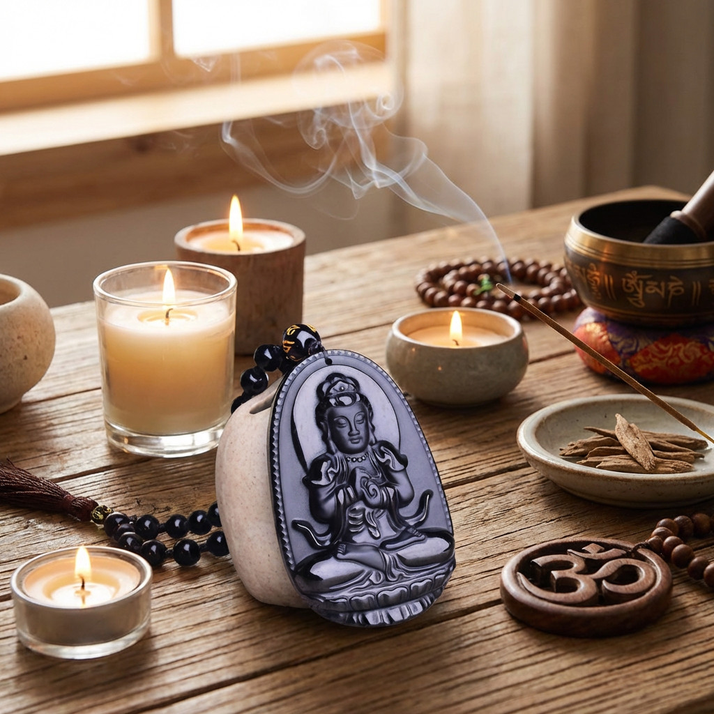 Obszidián Buddha nyaklánc