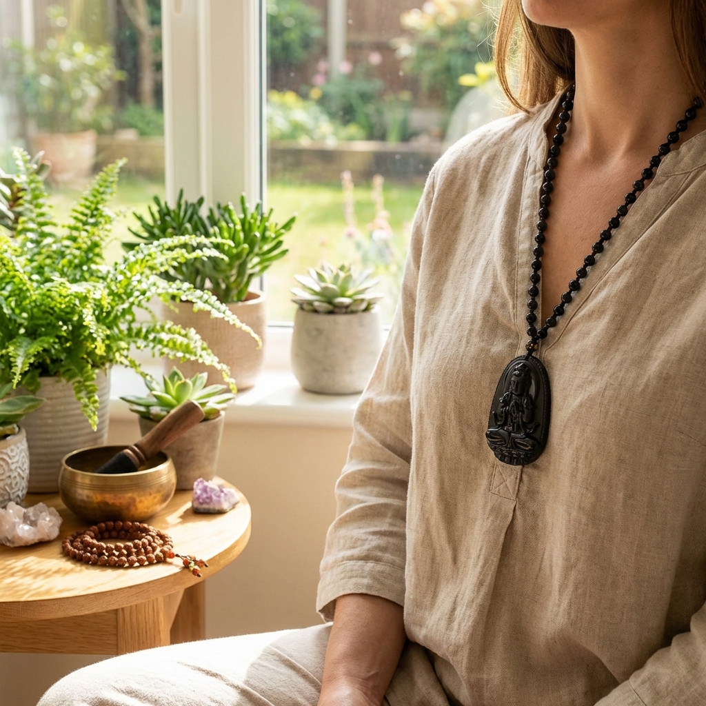 A Budhadekor obszidiánból készült nyaklánca segít abban, hogy a legnehezebb pillanatban is emlékeztetni tudd magad arra, hogy mik a legfontosabb dolgok az életben.